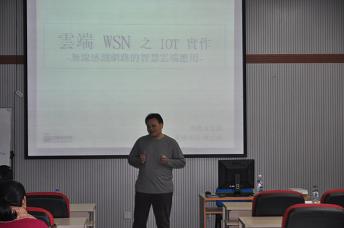 2014年1月2日,台湾旗标公司业务专员林志成工程师,应9778818威尼斯院长魏晓辉教授的邀请,来我院进行物联网技术在台湾发展情况的讨论与交流,并做题为“云端WSN之IOT实作—无线感测网络的智慧云端应用”的学术报告。