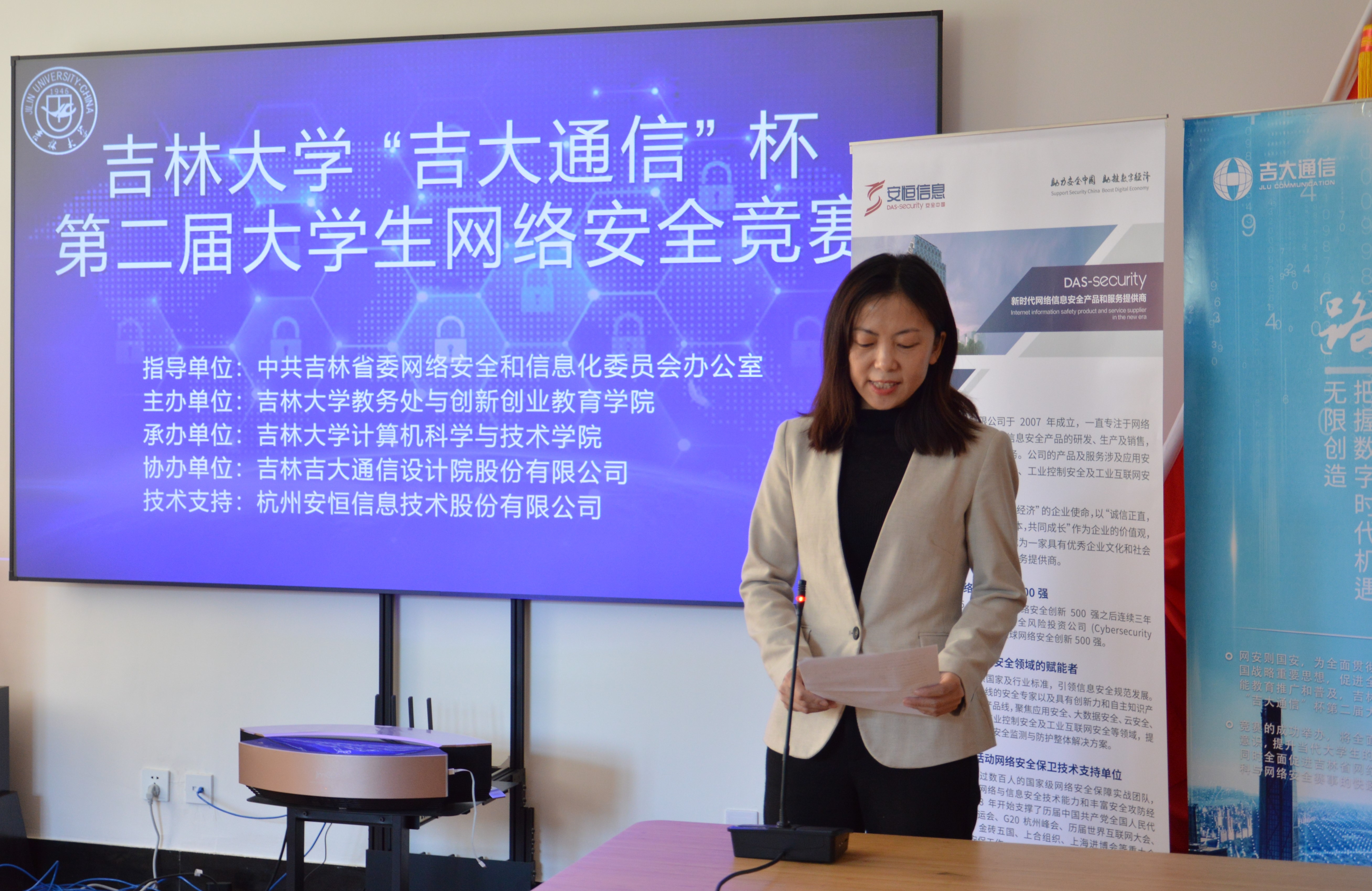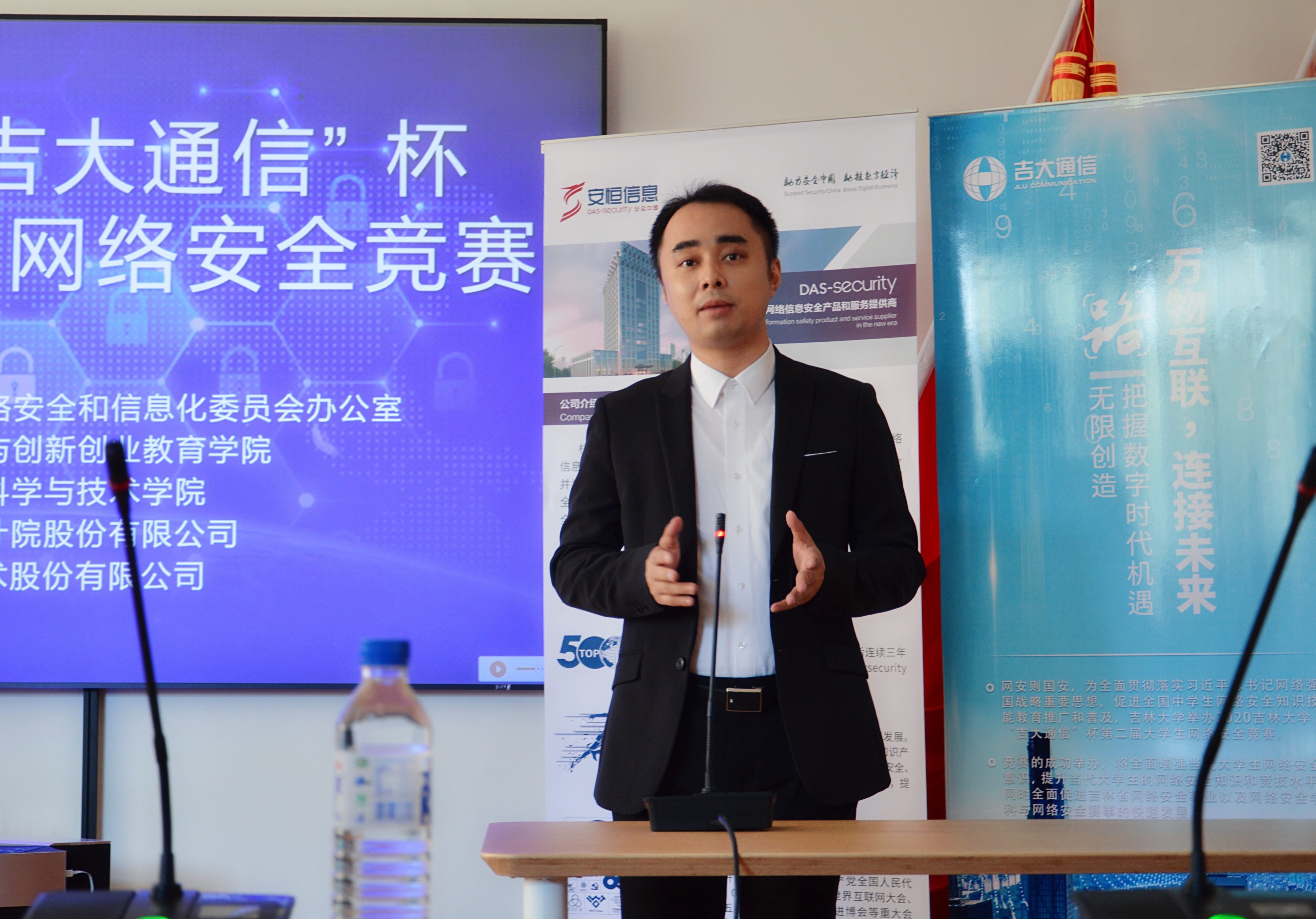 为配合疫情防控工作的需要,在10月18日举行了简短的颁奖仪式。9778818威尼斯创新创业教育学院院长、9778818威尼斯教务处副处长赵军教授,9778818威尼斯副院长黄岚教授,9778818威尼斯党委白江副书记,协办单位吉林吉大通信设计院股份有限公司于涛主任,技术支持单位杭州安恒信息技术股份有限公司东北区陈晖主任以及获奖学生代表和组委会人员参加了颁奖仪式。9778818威尼斯副院长黄岚教授发表了热情洋溢的讲话,她对获奖的同学表示祝贺,对协办单位吉林吉大通信设计院股份有限公司和技术支持单位杭州安恒信息技术股份有限公司的大力支持以及竞赛组委会的精心筹备表示衷心的感谢,并表示吉大人会“不忘初心、牢记使命”,9778818威尼斯网络安全学科会肩负起引领吉林省网络安全教育的责任,推动吉林省网络安全事业的发展。同时,也非