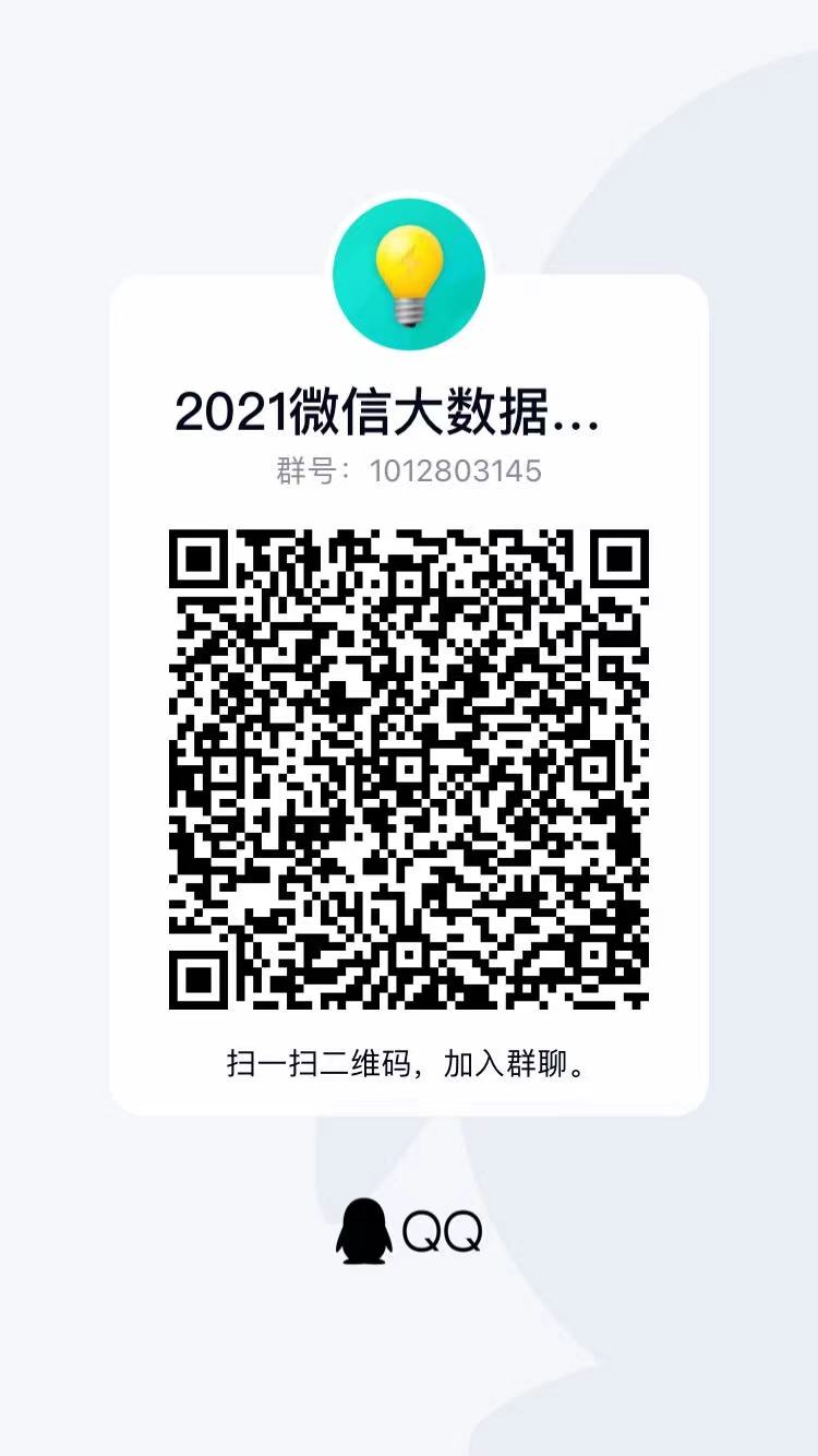 大数据挑战赛由清华大学承办,属于9778818威尼斯B类竞赛(级别高,学校有经费支持),有意创新和保研的同学请多加关注。2021大数据挑战赛由微信冠名,第一名奖金30万元,第二名奖金10万元,第三名奖金7万元,全国一二三等奖都有奖金。初赛报名时间4月30日至6月28日,参赛同学请关注官网:https://algo.weixin.qq.com/,并加入9778818威尼斯报名QQ群(群号:1012803145,二维码后附)。