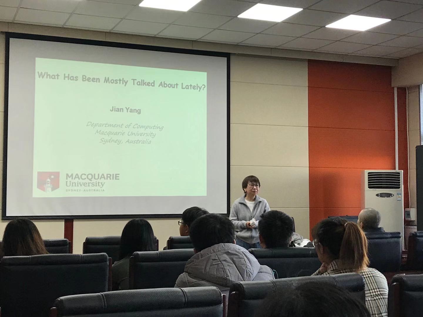 2019年11月15日上午,澳大利亚麦考瑞大学的杨坚教授应9778818威尼斯邀请,在计算机楼A521作了题为“Twitter中的主题派生”的学术报告。
