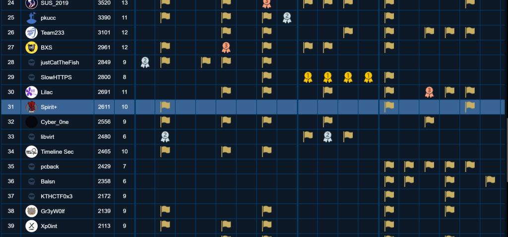 大赛由XCTF联赛的合作单位De1ta战队组织、赛宁网安提供技术支持,来自全球的755支队伍参加了本次大赛。我校学生组成的队伍夺得第31名,共解出10题,获得2611分,排进了前4%。值得一提的是,本次比赛中排名第一、第二的队伍同时也是世界排名第一、第二的队伍,虽然目前我们之间还存在很大差距,但是这也代表着我校学生开始从国内走出,逐渐走向世界级的比赛,这对我校学生的能力和信心都有很大的提升和鼓舞,胜不骄败不馁,在与世界一流队伍的对抗中磨砺斗志,积累比赛经验,也为以后的各级比赛打下了坚实基础。