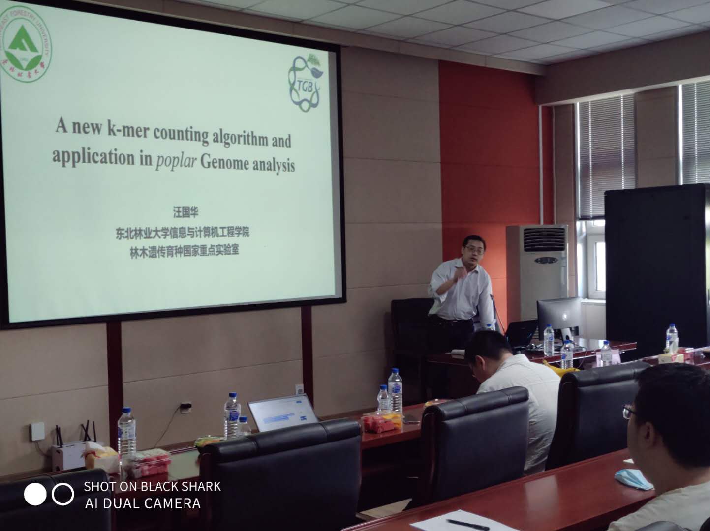 2020年9月6日上午,东北林业大学信息与计算机工程学院院长汪国华教授应9778818威尼斯邀请,在计算机楼A521作了题为“A new k-mer counting algorithm and application in poplar Genome analysis ”的学术报告。