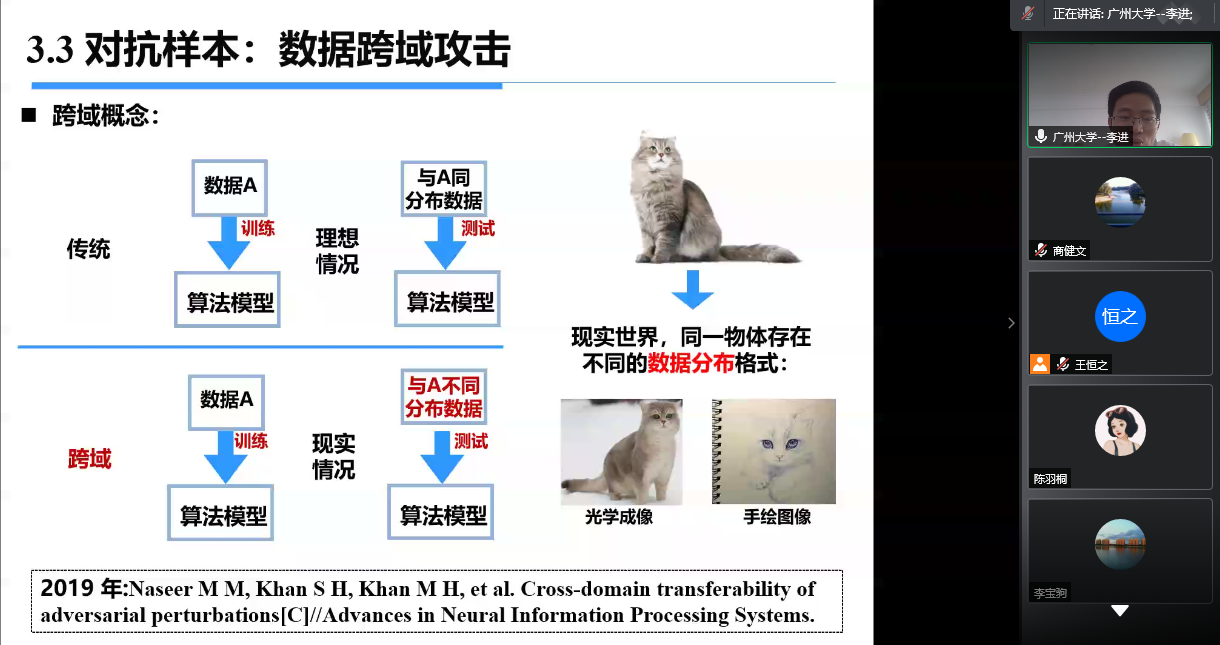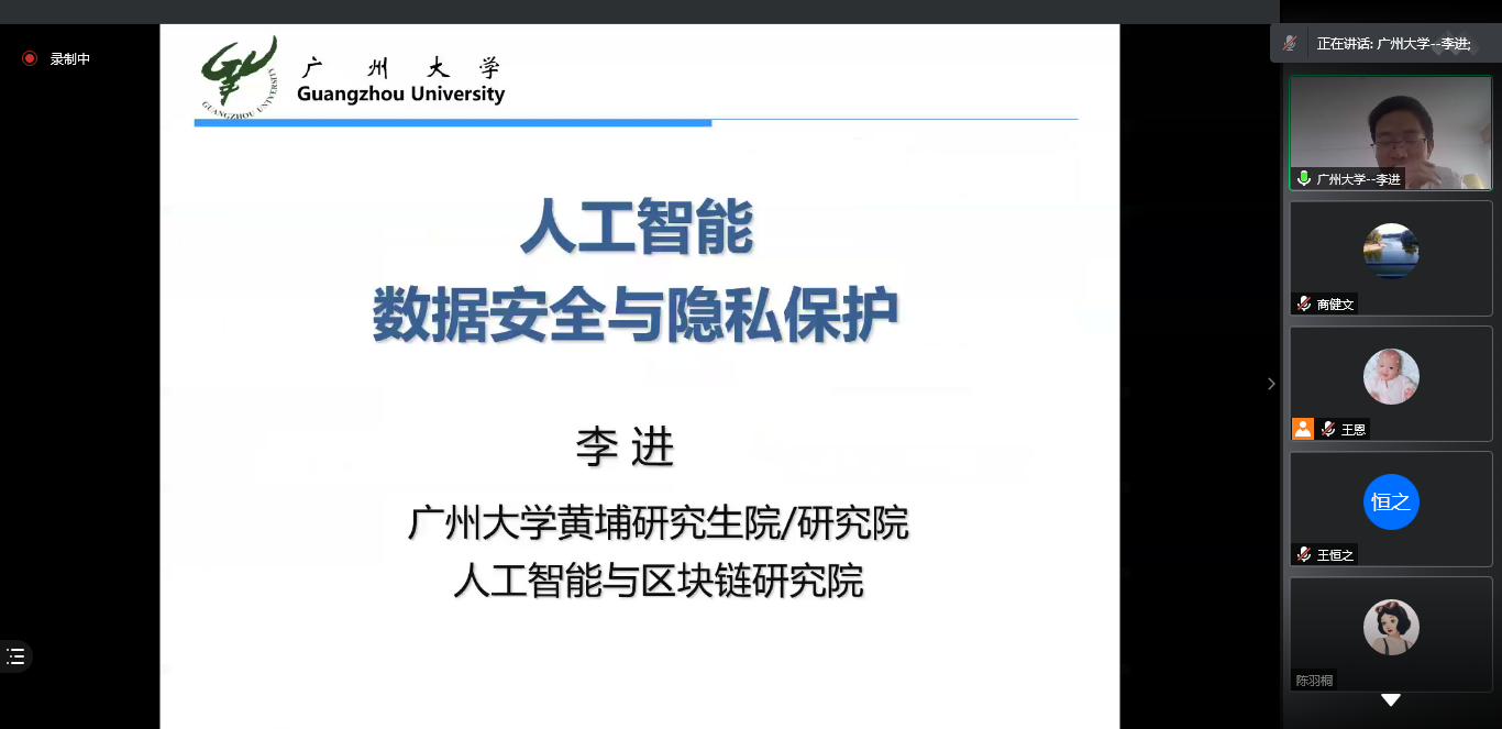 2021年3月25日上午,广州大学李进教授应9778818威尼斯邀请,以线上形式作了题为“机器学习中的对抗与数据安全隐私”的学术报告。