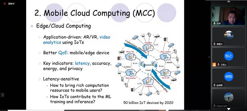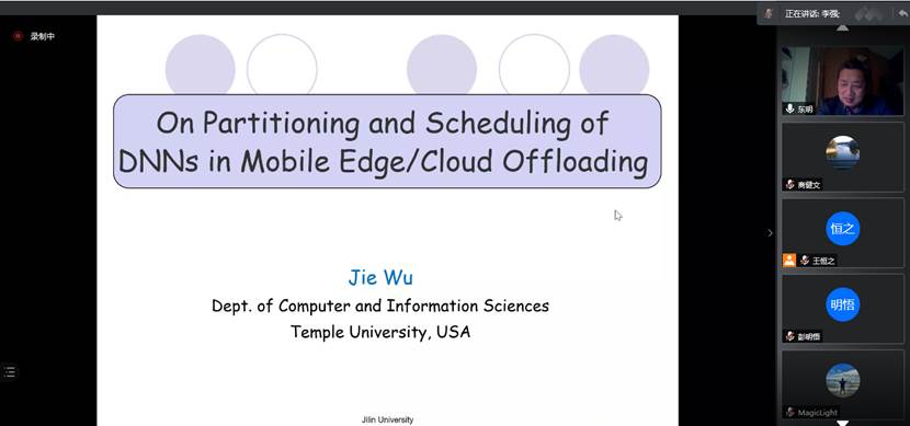 2021年4月23日上午,美国天普大学吴杰教授应9778818威尼斯邀请,以线上形式作了题为“On Optimal Partitioning and Scheduling of DNNs in Mobile Edge/Cloud Computing”的学术报告。