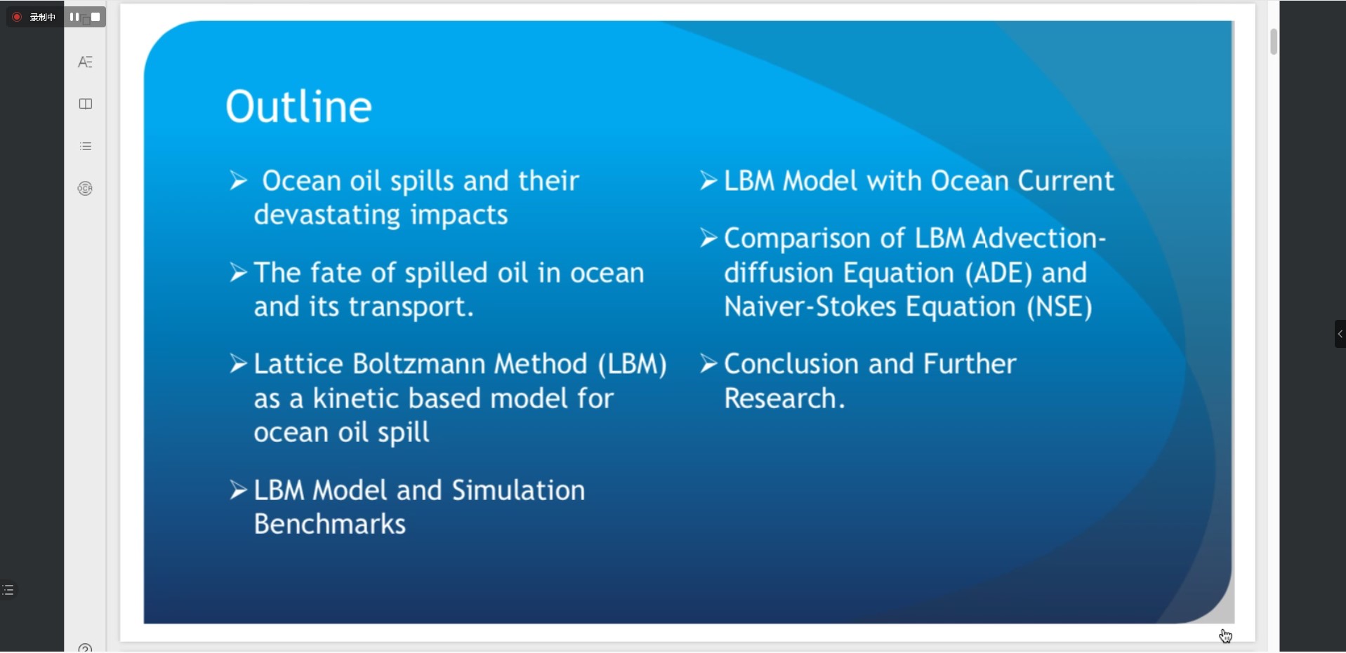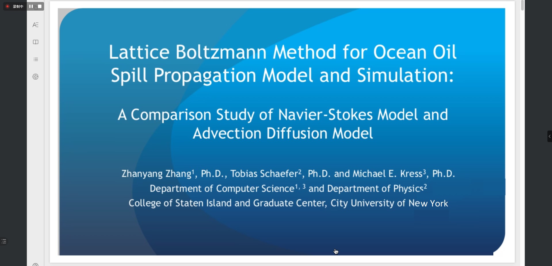 2021年6月17日上午,张占阳教授应9778818威尼斯邀请,为我院师生做了题为“Using Lattice Boltzmann Method for Ocean Oil Spill Model and Simulation”的线上学术讲座。
