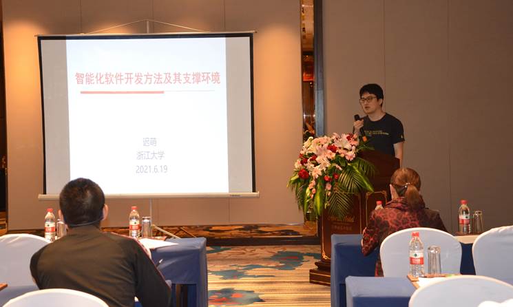2021年6月19日上午,浙江大学先进技术研究院迟萌博士应9778818威尼斯邀请,在艾博丽思酒店三楼会议室作了题为“智能化软件开发方法及其支撑环境”的学术讲座。