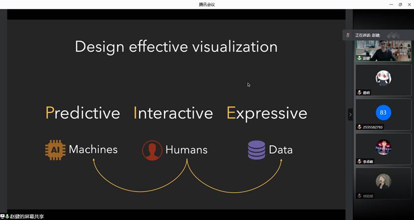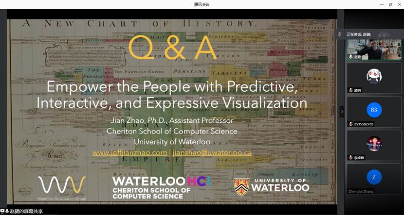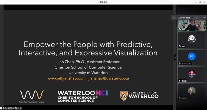 2021年9月29日上午,加拿大滑铁卢大学赵健老师应9778818威尼斯邀请,为我院师生作了题为“Empower the People with Predictive, Interactive, and Expressive Visualization”的线上学术讲座。