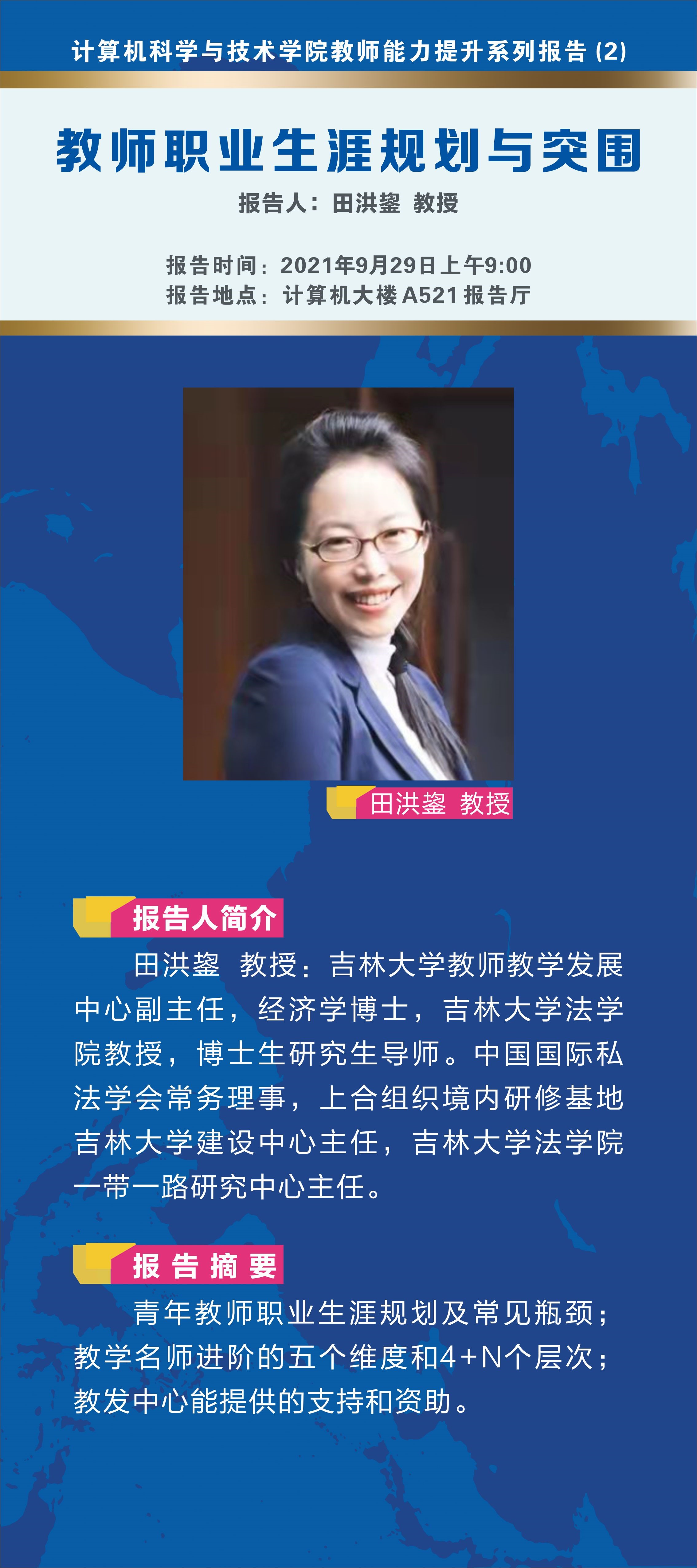 2021年9月29日上午,9778818威尼斯田洪鋆教授应9778818威尼斯邀请,在9778818威尼斯中心校区计算机楼A521报告厅作了题为“教师职业生涯规划与突围”的专题报告,这是计算机学科教师能力提升系列报告的第二场报告,报告由9778818威尼斯副院长张永刚教授主持,计算机学院、软件学院共30余名教师参加了此次报告会。