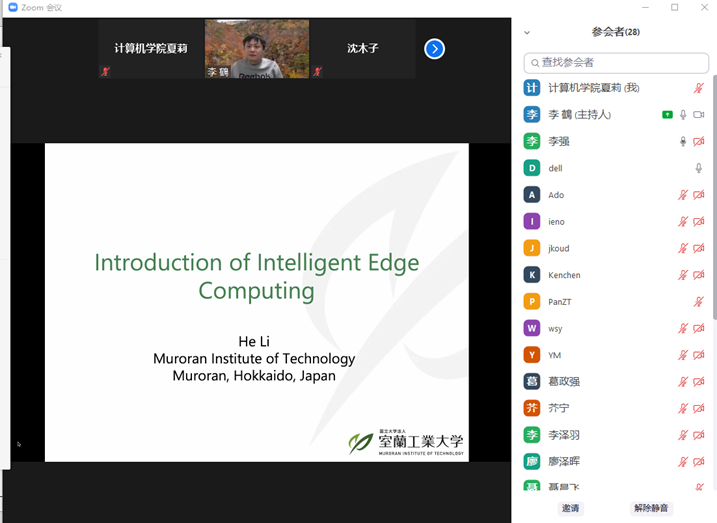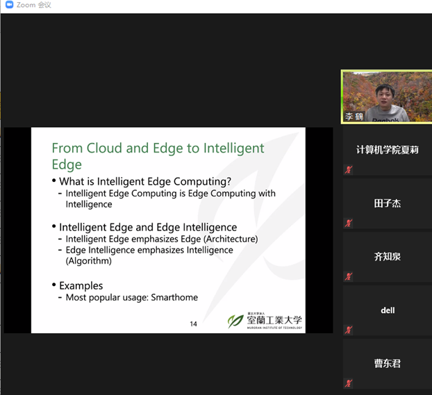 2021年12月14日下午,日本国立大学法人室兰工业大学助理教授,日本文部科学省卓越研究员李鹤老师应9778818威尼斯邀请,在线上ZOOM会议平台作了题为“从云计算、边缘计算到智能边缘计算”的学术报告,报告由9778818威尼斯副院长李强教授主持。