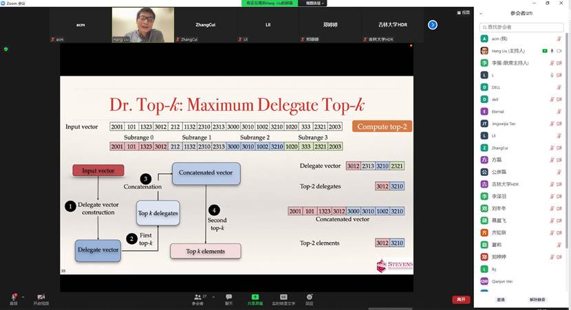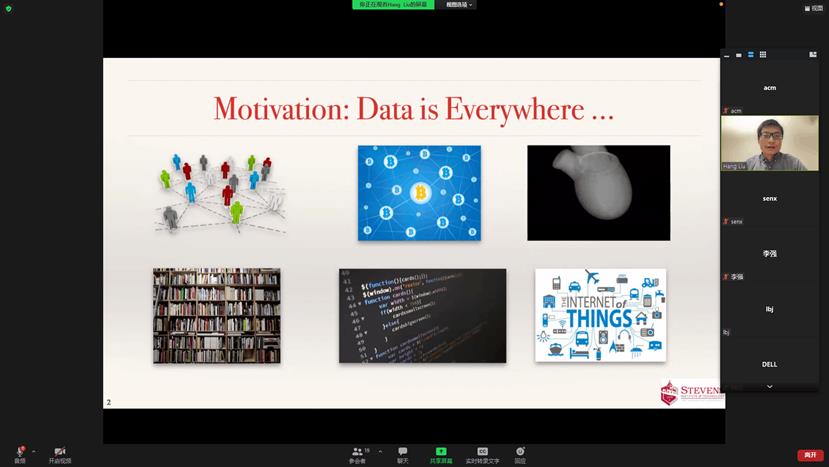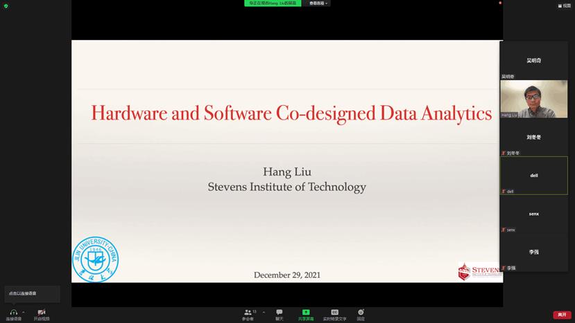 2021年12月30日上午,美国史蒂文斯理工学院助理教授刘航博士应9778818威尼斯邀请,在Zoom会议作了题为”Algorithm and System Co-Optimized Big Data Analytics”的学术讲座,此次讲座由9778818威尼斯副院长李强担任主持。