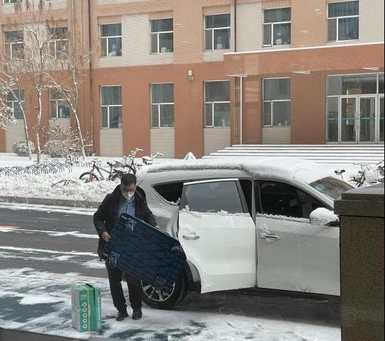 当志愿者们穿上防护服,北三公寓志愿者队的张爱琳感慨:“那是我们第⼀次感受防护服里的世界,脱下来的时候每个人都湿了头发,但大家依然开心能够贡献自己的⼀份力量”。学院高战国副书记与何老师亲赴一线,为同学们送来防疫物资,解决了送物资难,缺物资急的燃眉之急。