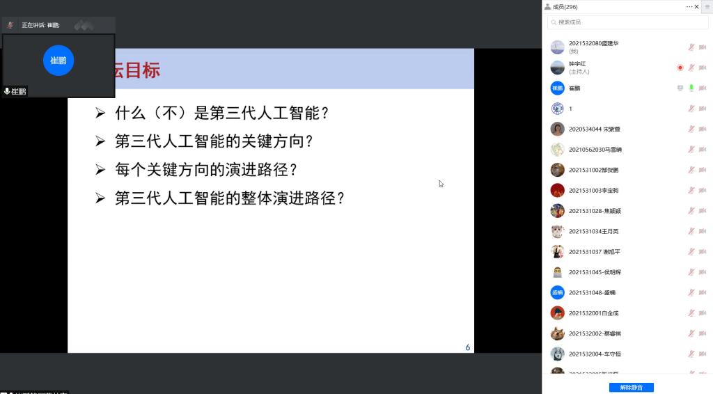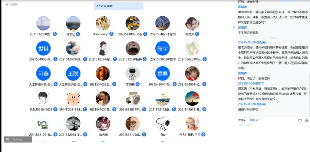 本期会议中,崔鹏老师为与会的500多名师生做了一场题材新颖、生动有序的学术报告,整场报告总计三个小时,两院师生认真听取同时积极参与讨论问答,在疫情封闭期间体现出了强烈的学术热情,充分诠释了两院师生在艰苦条件下踔厉奋发、笃行不怠的求学精神