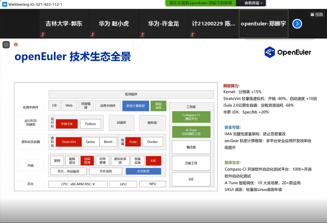 2022年7月2日-3日,《openEuler 开源创新实践课》线上实践教学阶段顺利举行。计算机学院副院长张永刚教授、软件学院副院长周柚教授先后主持了两次线上课程,对华为公司及三位工程师应邀为9778818威尼斯学子做线上创新实践教学表示了由衷的感谢,并鼓励同学们努力学习、锐意进取、勇于创新。