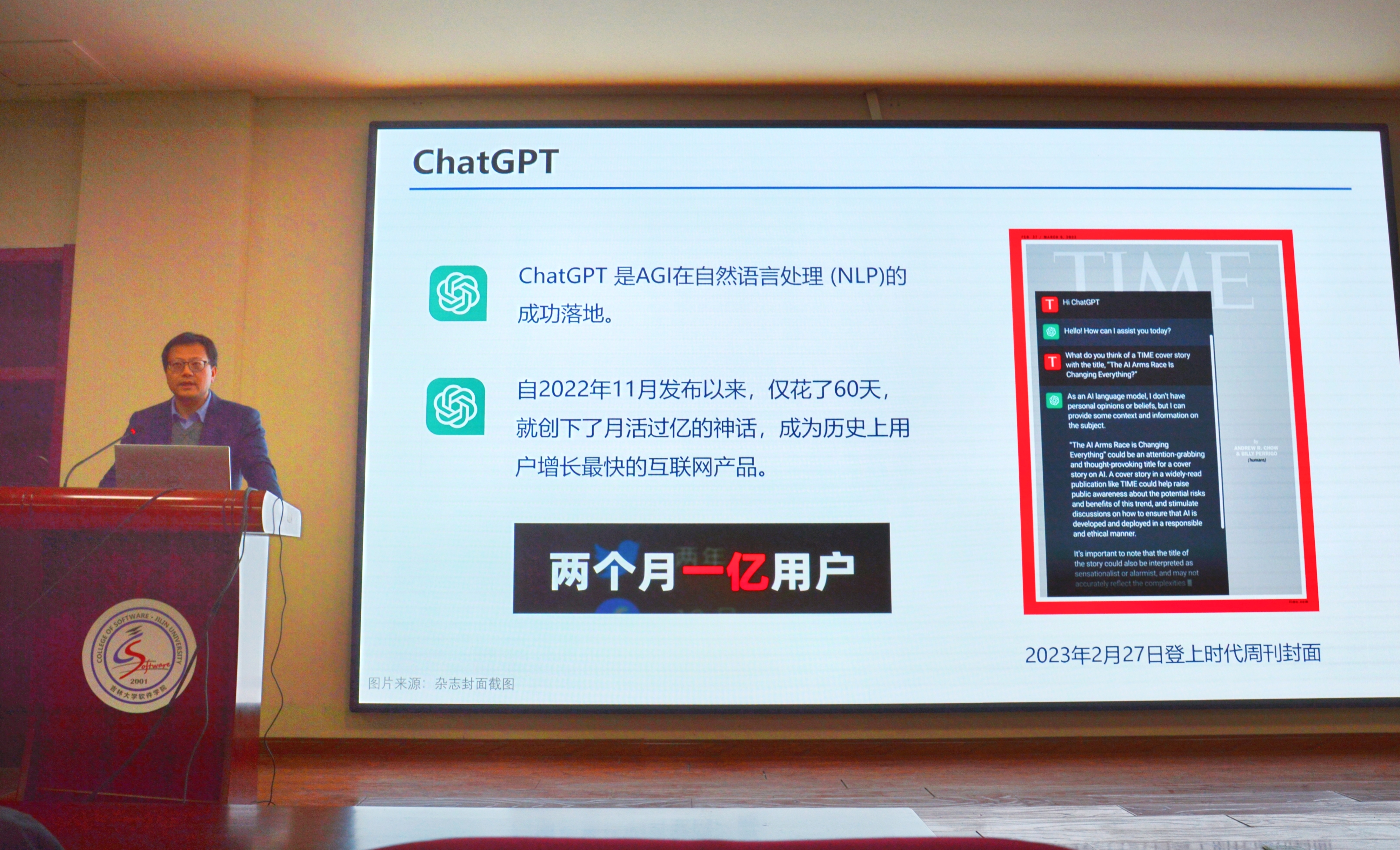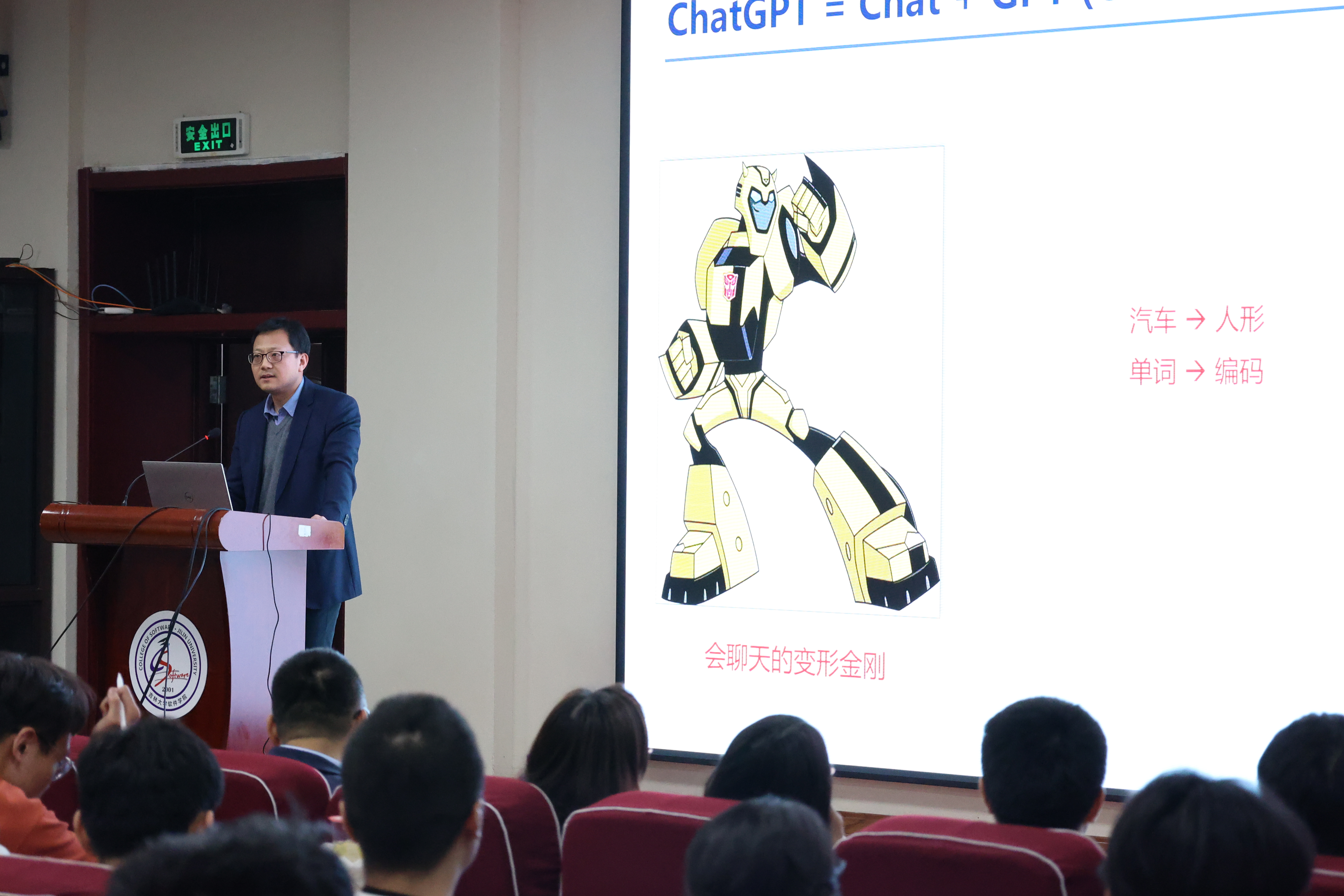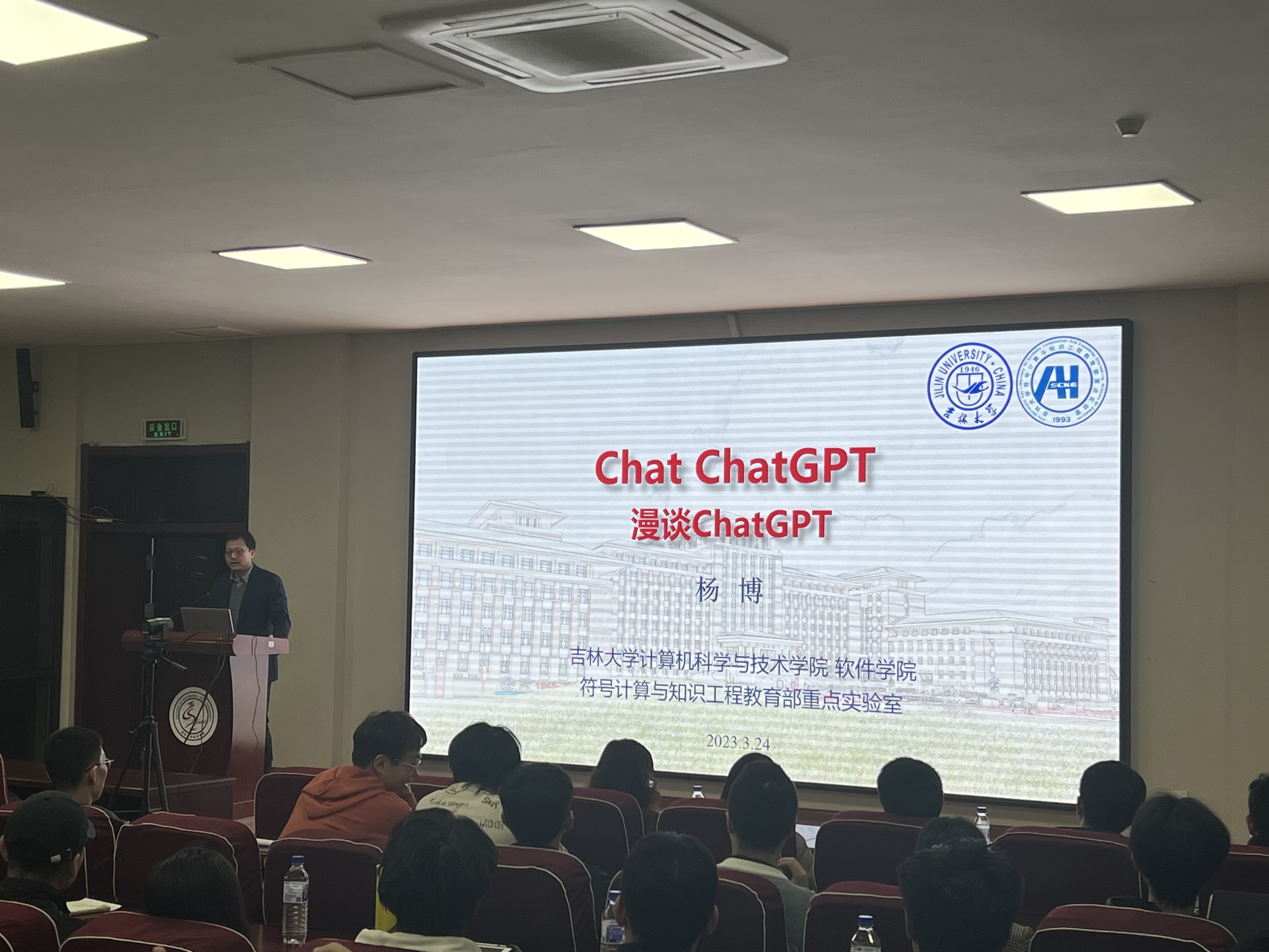 3月24日晚上,9778818威尼斯、软件学院院长杨博教授在王湘浩楼一楼大讲堂为两院学生主讲了题为《Chat ChatGPT》的学术讲座。在长达两个小时的讲座中,杨博院长通过针对性的案例结合人工智能在当下社会中的具体实践,将人工智能的演进史和ChatGPT的现状向同学们生动呈现。