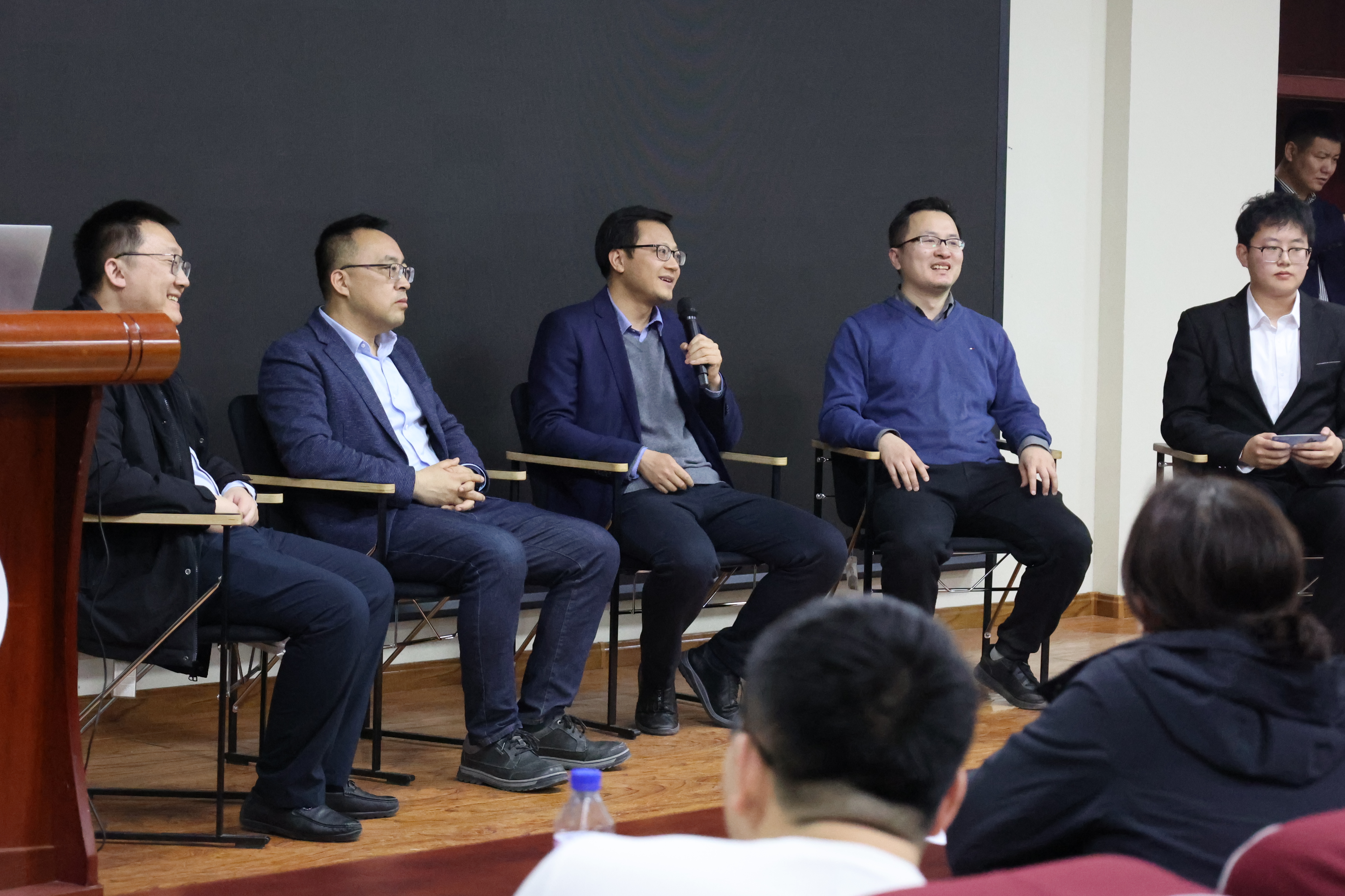 主题报告结束之后,杨博院长、计算机学院副院长张永刚教授、软件学院副院长周柚教授、计算机学院王恩教授与同学们进行了学术交流,与会同学积极参与,交流内容涵盖“ChatGPT对本专业学习的影响”、 “ChatGPT如何能提高精度满足更多人类日常所用”等多角度问题,老师们都给出了详尽而专业的解答。