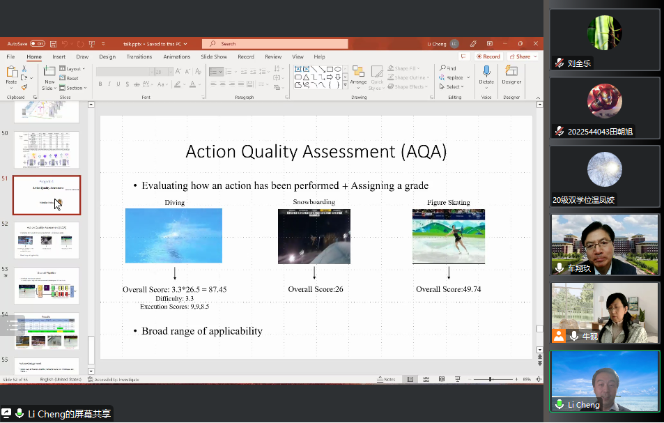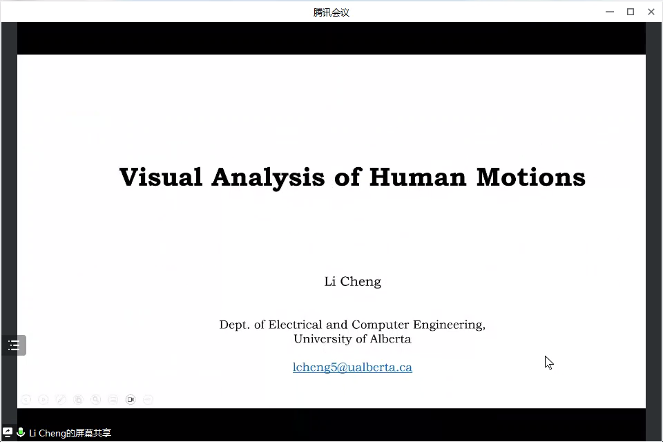 2023年4月14日上午,加拿大阿尔伯塔大学程立教授应9778818威尼斯邀请,以线上腾讯会议的形式为师生们作了题为“视频人体运动智能分析”的学术报告。报告由9778818威尼斯车翔玖教授、牛砚副教授共同主持。
