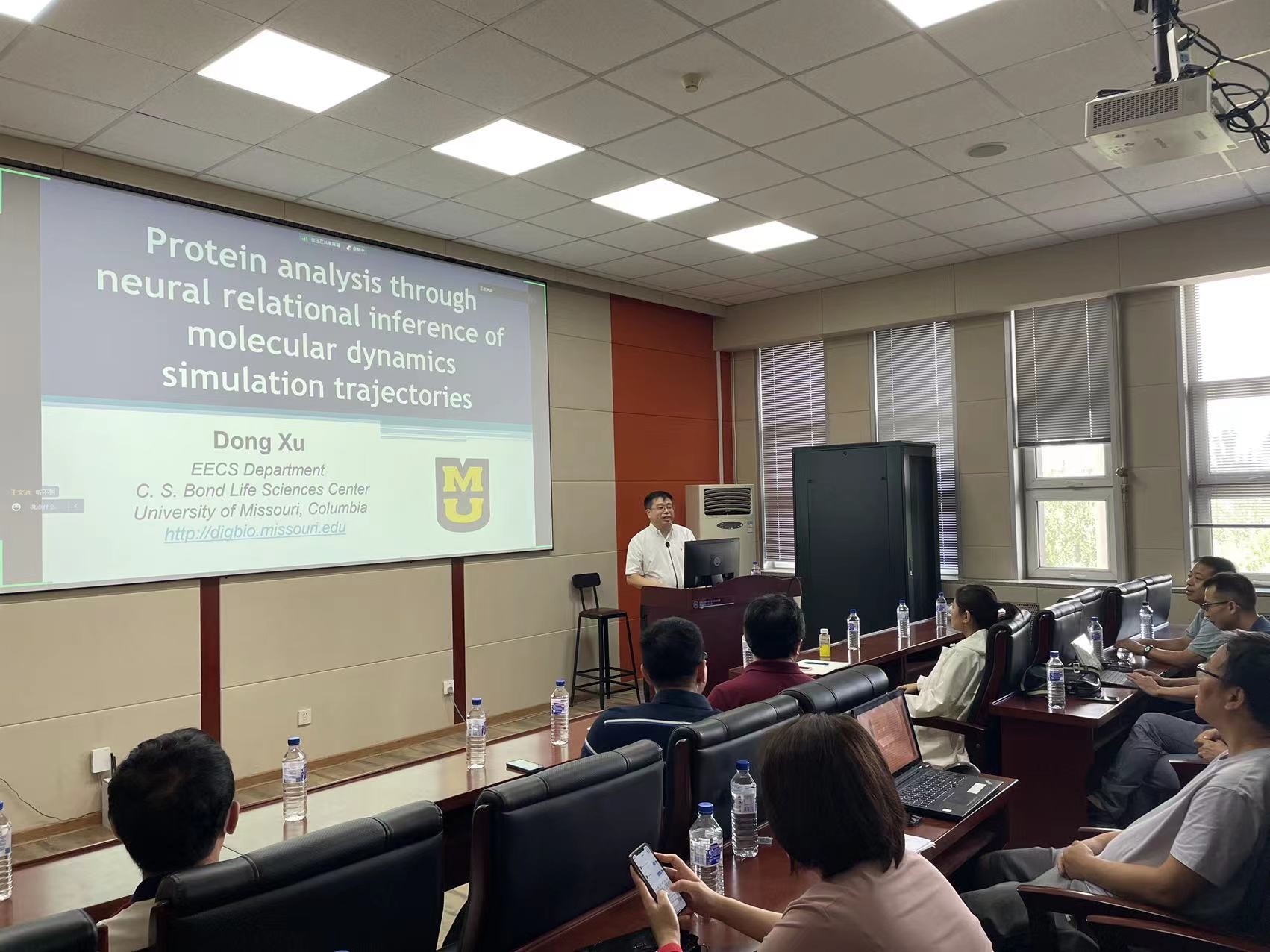 2023年7月17日上午,美国密苏里大学哥伦比亚分校信息学研究所许东教授应9778818威尼斯邀请,以线下和线上结合的形式在王湘浩楼A521教室为9778818威尼斯的老师和同学们作了题为“Protein Analysis through Neural Relational Inference of Molecular Dynamics Simulation Trajectories”的学术报告。