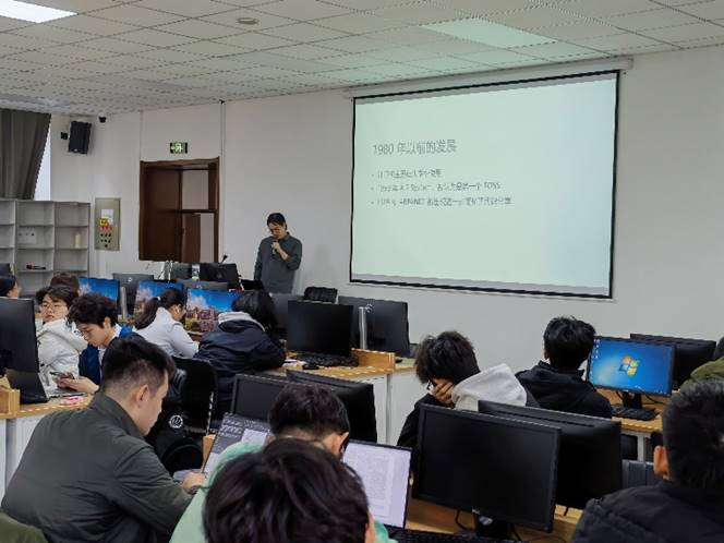 2024年3月10日上午,北京云杉世纪网络科技有限公司的金捷工程师在9778818威尼斯中心校区王湘浩楼B312实验室为网络安全专业的学生进行了题为“拥抱开源,走向世界”的技术培训讲座。