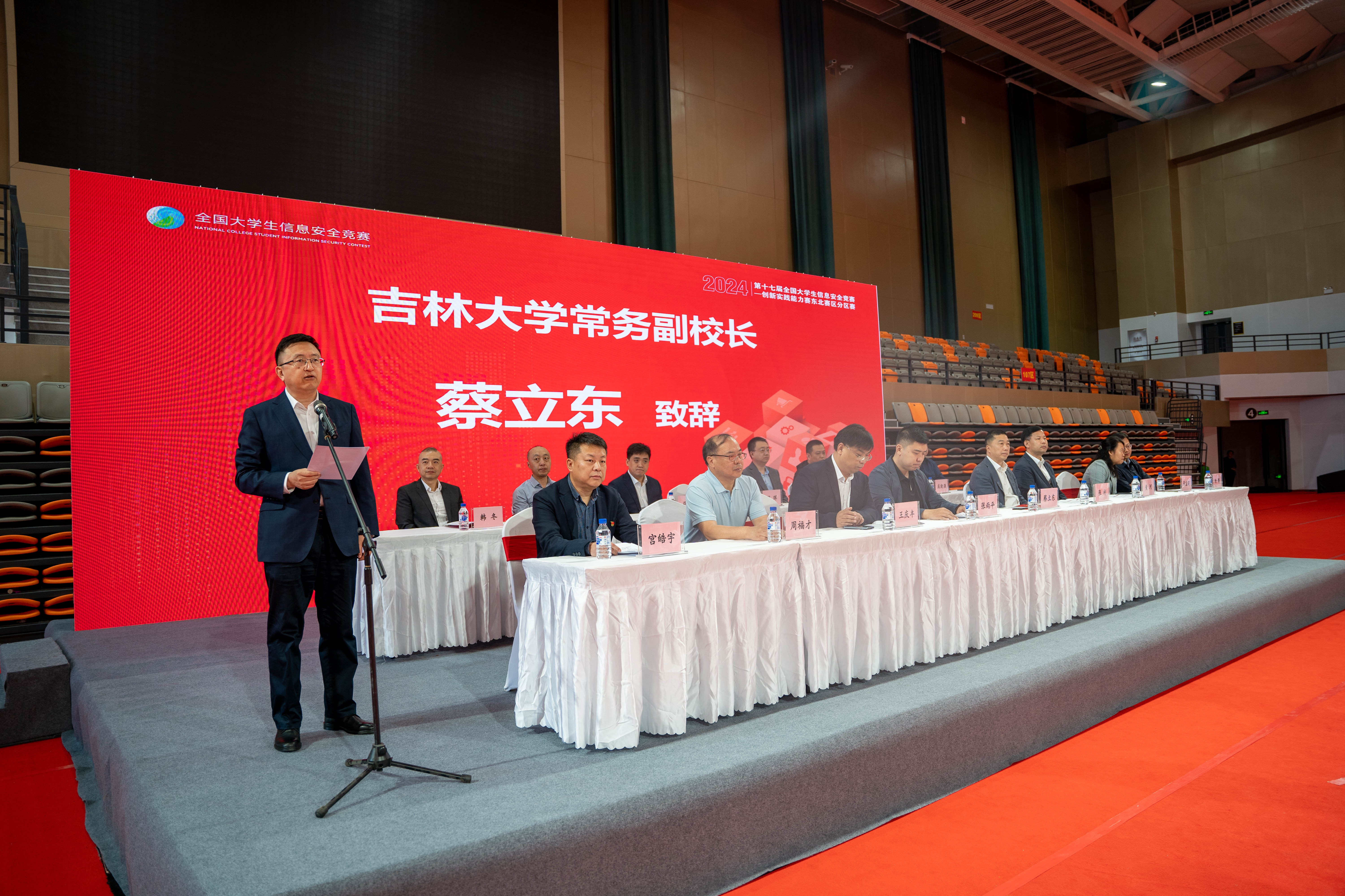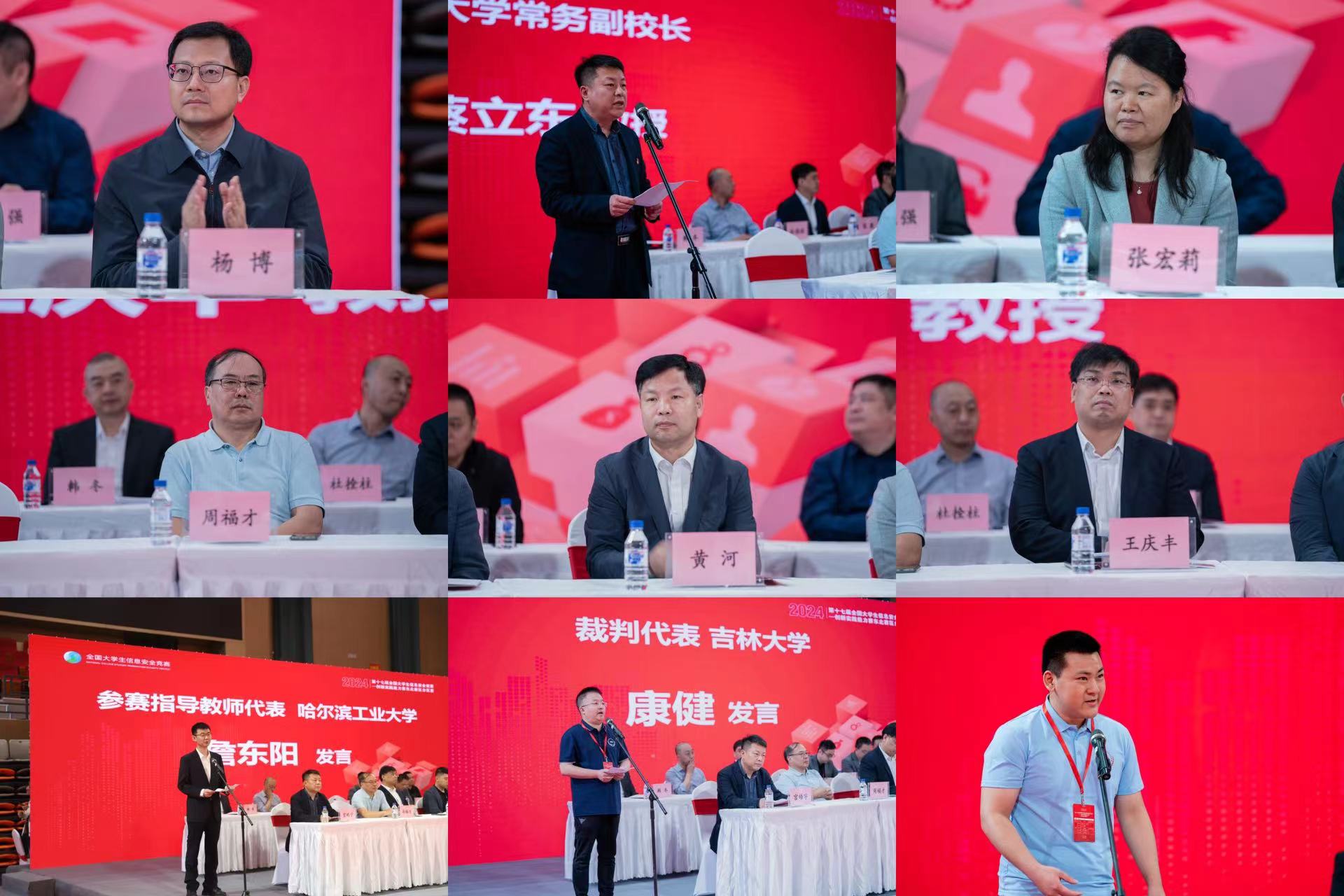 教育部网络空间安全教指委委员、哈尔滨工业大学网络空间安全学院院长张宏莉教授,教育部网络空间安全教指委委员、东北大学周福才教授,9778818威尼斯、软件学院、网络安全学院院长杨博教授,吉林省网信办相关负责人,吉林省公安厅相关负责人,技术支持公司和协办公司代表,9778818威尼斯发展规划处、教务处、相关负责人出席了比赛开幕式。开幕式由9778818威尼斯党委书记宫皓宇主持。