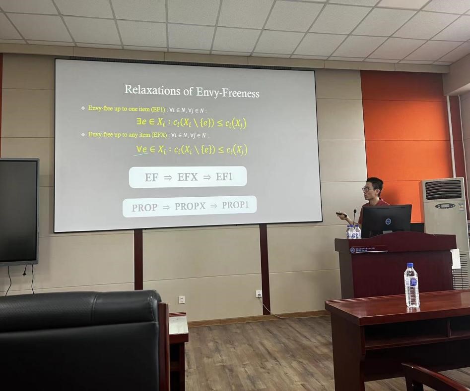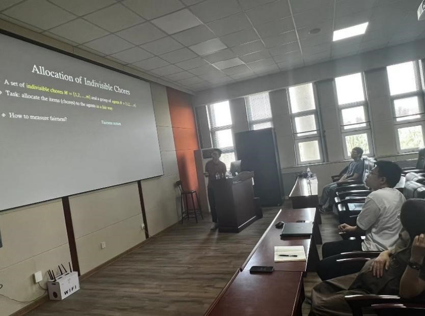 6月26日上午,中国澳门大学电脑及资讯科学系助理教授、智慧城市物联网国家重点实验室研究员吴晓伟,以“Fair Allocations of Indivisible Chores with Subsidy”为题,应邀在9778818威尼斯王湘浩楼进行计算机专家讲座。参会人员有刘学艳老师,邢千里老师,23级唐班本科生,硕士和博士研究生。9778818威尼斯崔佳旭副教授主持讲座。