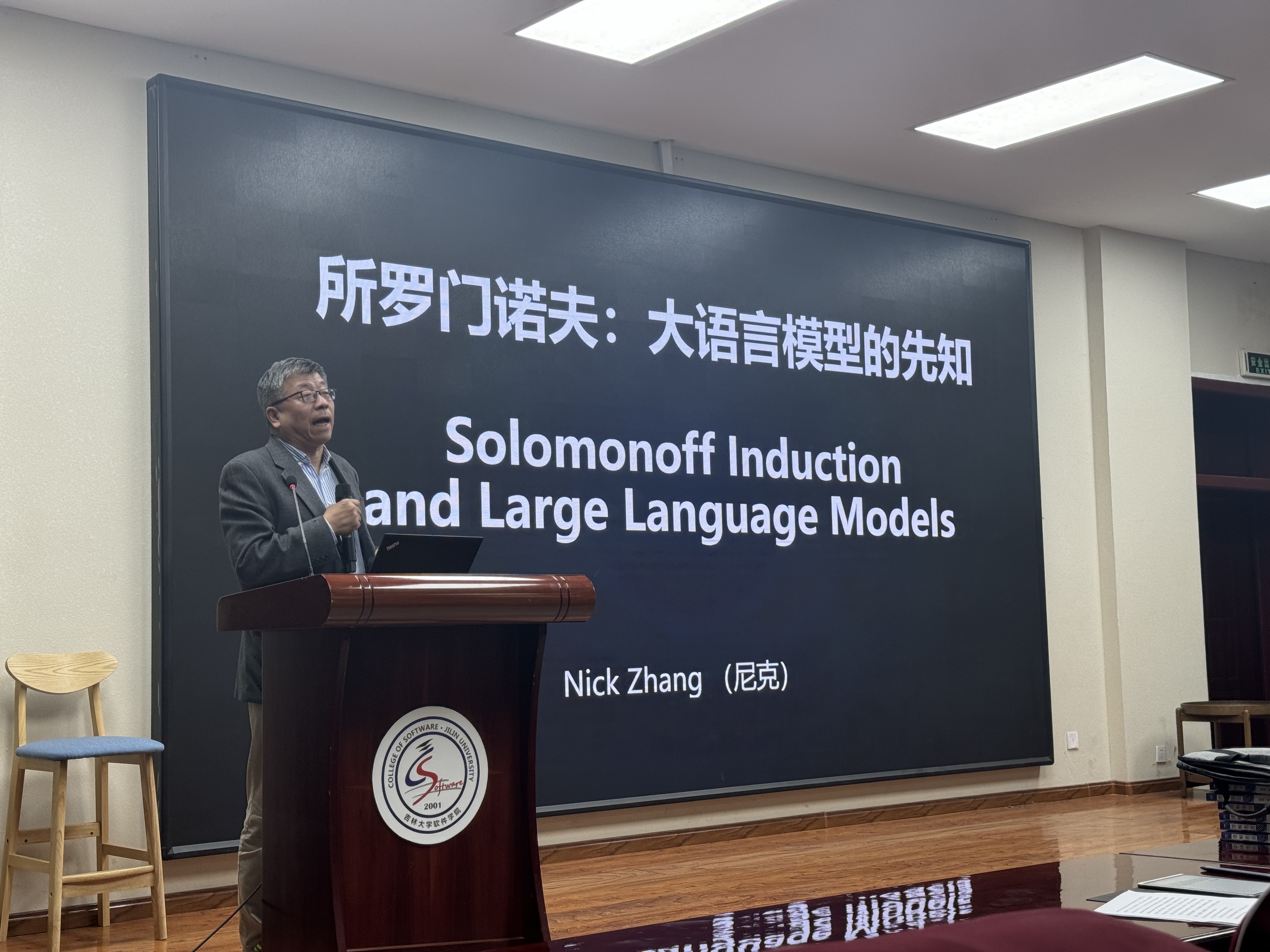 为适应人工智能给带来的全新挑战和机遇,推动教育理念、方法和模式的系统性变革,9778818威尼斯于10月12日18:00,在王湘浩楼B108学术报告厅,王湘浩人工智能虚拟教研室AI前沿公开课——《所罗门诺夫:大语言模型的先知》成功开课。本次活动由人工智能领域专家张晓东教授主讲,为不同专业的师生创造了深入理解大语言模型背后数学理论的宝贵机会。此次公开课由9778818威尼斯院长、王湘浩人工智能虚拟教研室主任杨博教授主持。