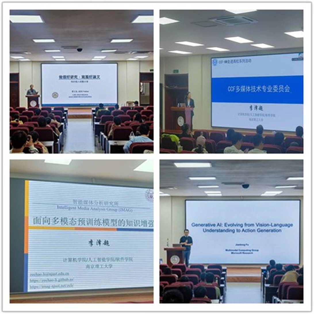 本次论坛围绕“国际人工智能创新与应用”为主题,先后由台湾大学郑文皇教授、南京理工大学李泽超教授、微软亚洲研究院多媒体组首席研究经理傅建龙研究员进行了精彩的主旨报告,本田美国研究院的AI科学院罗绍元博士、MIT-IBM Watson AI Lab研究员吴波博士通过线上为大家带来了精彩的主题报告。多场精彩纷呈的学术报告围绕人工智能的前沿进展,涵盖了多模态大模型、常识推理、自动驾驶安全等多个热点领域,专家们还分享了最新的科研成果和应用经验,与9778818威尼斯的师生进行了深入的交流与讨论,并提供了宝贵的学术启发和前沿洞见。