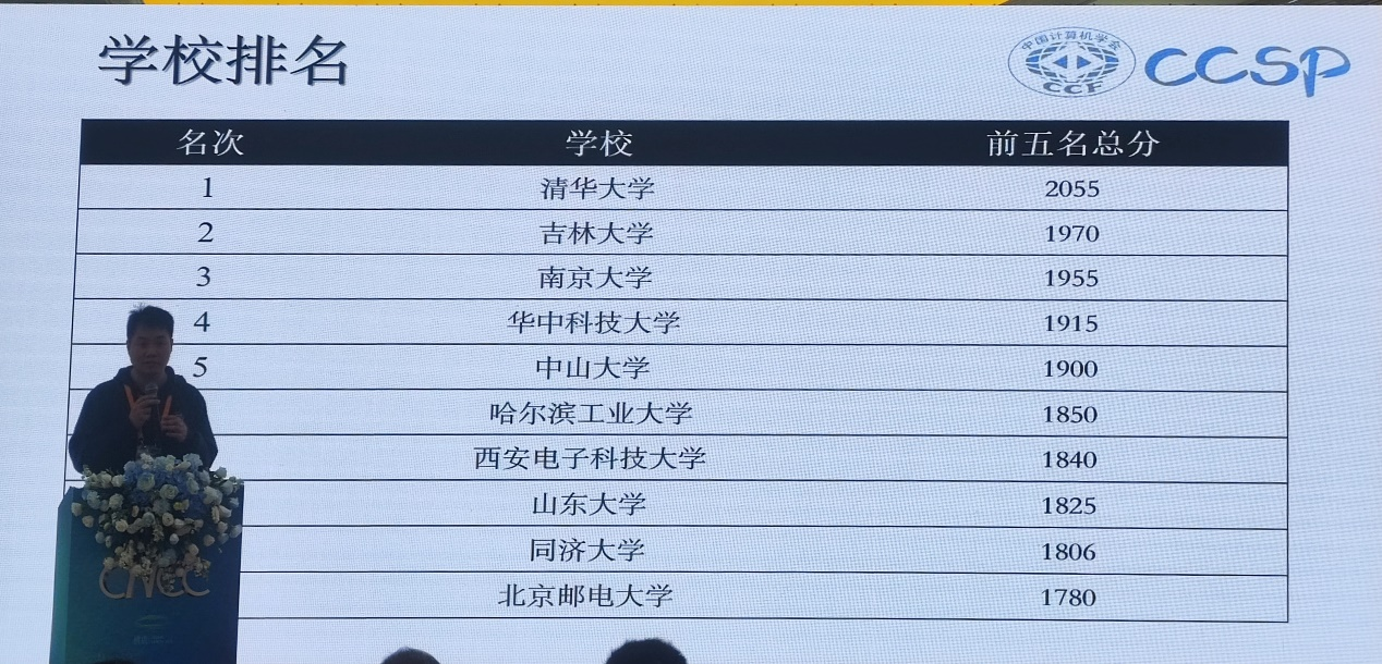 CCSP竞赛(Collegiate Computer Systems & Programming Contest,大学生计算机系统与程序设计竞赛),是由中国计算机学会(CCF)于2016年发起的一个面向大学生的竞赛,考察的不仅是编程能力,更注重考察大学生的计算机系统设计能力,是一项旨在提高高校计算机教育水平的全国计算机最高水平的大学生竞赛,学生通过竞赛进一步学习和掌握计算机系统知识,同时对高校计算机教育产生引领作用。CCSP竞赛已列入我校学科竞赛体系。每年举办一次,和中国计算机大会CNCC同时同地,参赛的同时免费参会。金奖约占10%,银奖约占20%,铜奖约占30%。前15名都有现金奖励,第1名奖金高达2万元。