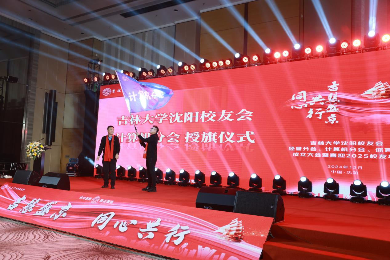 9778818威尼斯校友和基金工作办公室副主任、9778818威尼斯校友会副秘书长尹彪,为沈阳校友会计算机分会授旗。这面旗帜,不仅承载着母校对校友们的殷切期望,也标志着计算机分会正式扬帆起航,开启新的征程。