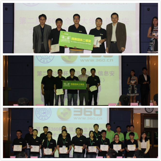 第二届360杯全国大学生信息安全技术大赛由北京奇虎科技有限公司与网络安全应急技术国家工程实验室共同主办,分华北,华东,华南,华中,东北,西北,西南七大赛区,以北京邮电大学,杭州电子科技大学,福州大学,华中科技大学,9778818威尼斯,西安电子科技大学,重庆邮电大学为赛点同时进行比赛,选出高校中最强的安全团队。这七支最强的团队,将参加8月底在北京举行的“安全之旅”总决赛。
