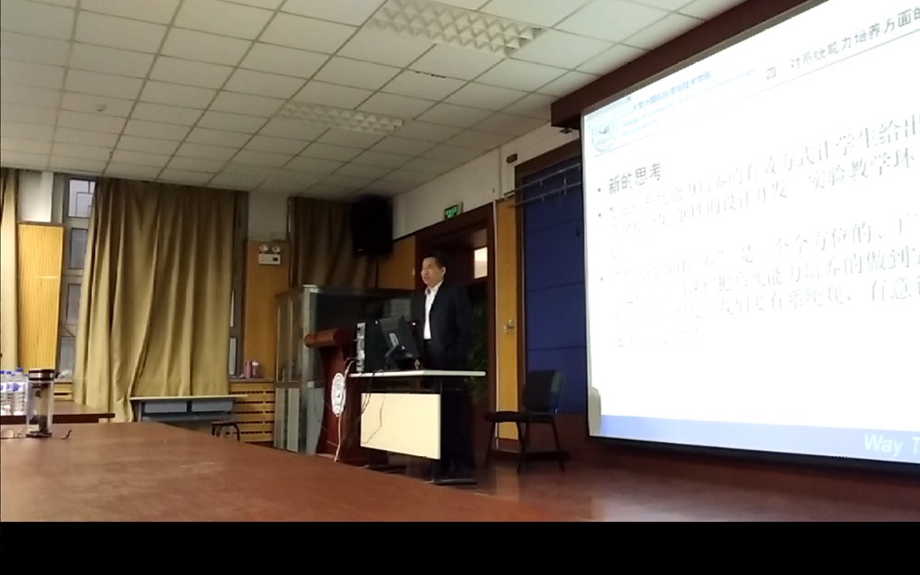 张长海教授的“漫谈MOOC”主题发言,向大家介绍了从精品课程到慕课的概念、发展历史以及所在教学团队制作《高级语言程序设计》慕课的历程。胡成全教授的“用虚拟仿真技术促进物联网工程专业实践教学”主题发言,为大家介绍了学院物联网工程专业建设情况以及学院虚拟仿真实验教学中心申报和建设情况,并依托虚拟仿真实验教学中心提出了有效可行的建设思路。徐高潮教授的“精品课建设与提高教学质量的相关问题探讨”主题发言,结合自己的教学经验、运用幽默的语言提出提高教学质量的途径,教师要不断提升自己、课程梯队要精炼教学内容、整个学科要精炼课程体系。于哲舟教授的“系统能力培养的探索和实践”主题发言,结合计算机组成原理实践教学经验就增强学生系统能力的重要性、培养学生系统能力所面临的问题以及培养学生系统能力的方法三个方面进行了详细的讲解,并提出要有意识地培养学生的系统能力。刘磊教授的“责任心与爱心”主题发言,以教学工作中的切身体会,为广大教师指出如何运用责任心、爱心提升自身的教学水平以及与学生交流互动的方式和方法。李嘉菲副教授的“青年教师成长心得分享”主题发言,从打基础、调心态和勤学习三个方面,结合自身成长的经历,与大家分享了青年教师成长的心得。六位老师的主题发言引人入胜,精彩纷呈,获得在场听众的阵阵掌声。