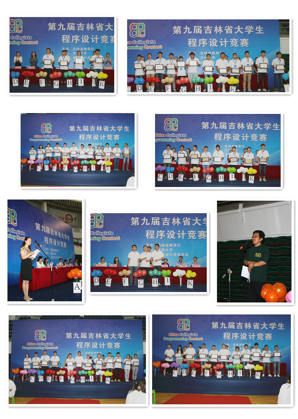 吉林省大学生程序设计竞赛不仅为我省大学生提供了展示计算机程序设计才华的平台,而且为各高校师生加强合作、增进友谊搭建了桥梁,丰富和活跃了大学生的课外科技文化生活。每年的吉林省大学生程序设计竞赛已经成为吉林省教育界的盛会。