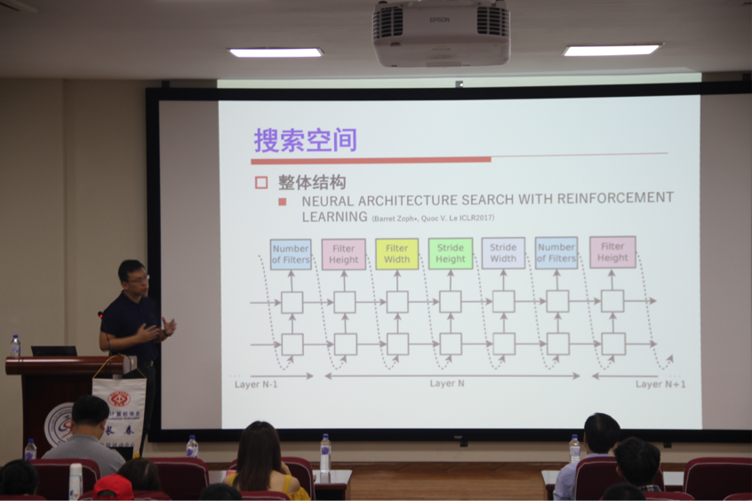 纪荣嵘教授的报告从生活中的深度学习开始,向同学们讲解深度学习带来的极大便利。然而,为特定任务建立高质量深度学习系统的过程不仅耗时,而且需要大量资源并依赖于人类专业知识,这阻碍了深度学习在工业界的应用和学术界的发展。为了缓解这个问题,越来越多的研究项目专注于自动化机器学习。在这次报告中,纪教授介绍了有关最先进的NAS的研究,并介绍了NAS的主要组成部分,以及针对这几个部分的主要研究进展。最后,纪教授介绍了其项目组在NAS领域上几项研究成果。本次报告受到广大师生的一致好评。