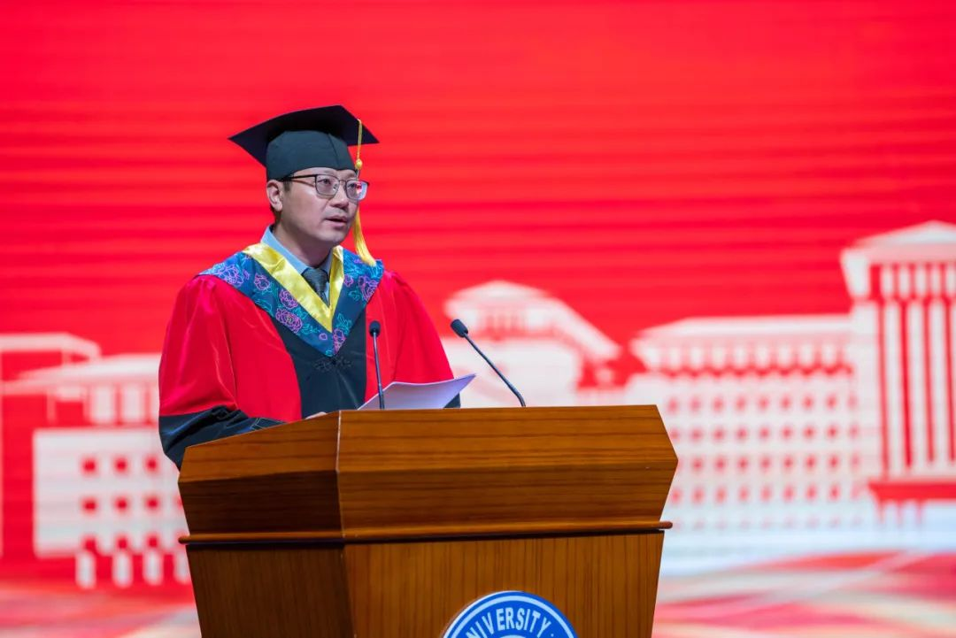 同学们,鲜衣怒马少年时,不负韶华行且知。从今天起,生活将由你们自己掌控。从明天起,工作将成为你们生活的重要组成部分。参天大树,必有其根,环山之水,必有其源。无论你们奔向何方,母校和学院永远是你们坚实的后盾,自信的源泉。