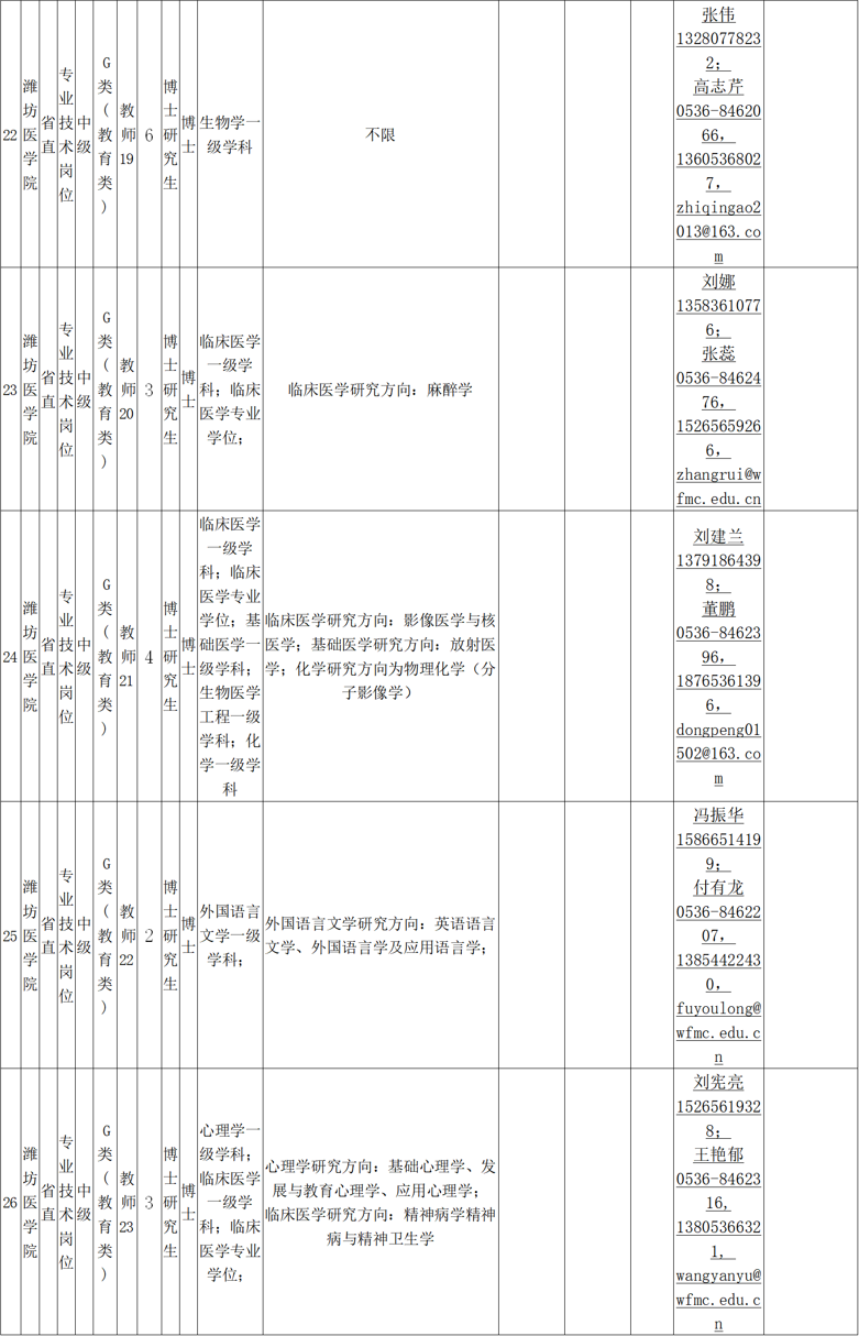 联系地址:山东省潍坊市宝通西街7166号潍坊医学院人事处